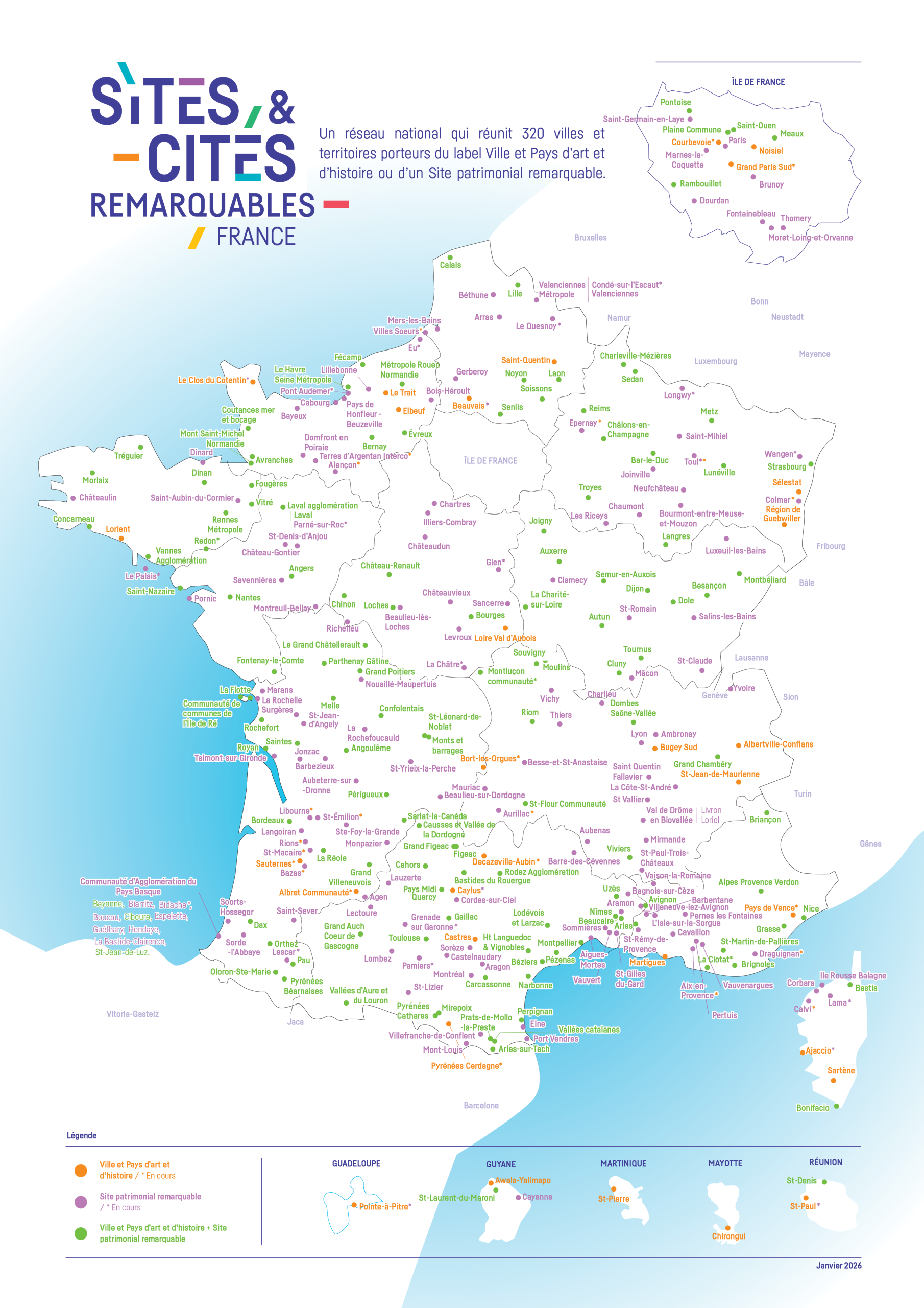 En 2018, 190 villes et territoires ont signé une convention avec le ministère de la Culture, pour développer une démarche de connaissance approfondie de leur territoire, de mise en valeur de leur patrimoine et de sensibilisation des publics (habitants, public jeune, touristes). Elles ont recours à un personnel qualifié : les animateurs de l’architecture et du patrimoine, les guides conférenciers…