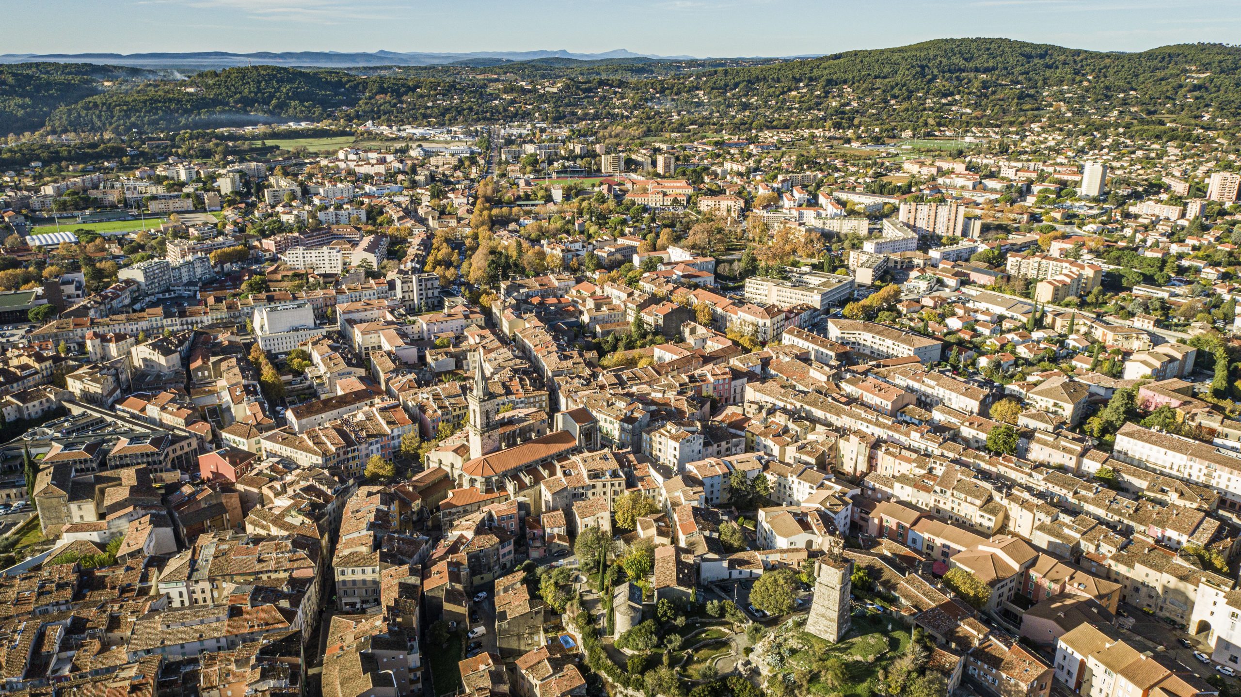 Vue d’ensemble de Draguignan – Ville de Draguignan08 Nov 2022 vue d’ensemble ou vue aérienne de la ville ou du centre historique